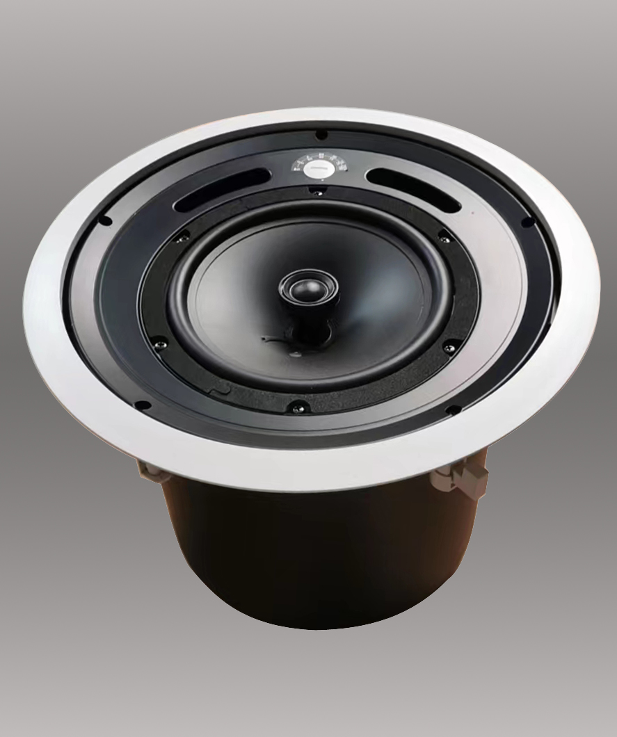 產(chǎn)品特點(diǎn) Features ■ 定阻、定壓輸出可切換 ■ 采用高、低音同軸設(shè)計(jì),高音為釹磁,并可旋轉(zhuǎn)高音指向角度 ■ 內(nèi)置6dB/OCT分頻網(wǎng)絡(luò),元件均采用HIFI級(jí)低損耗材料 ■ 增加金屬后罩鐵桶,形成一個(gè)獨(dú)立的共震腔體,不僅有一般的機(jī)械防護(hù)作用,而且更能達(dá)到消防防火的作用,最重要的是能適合沒(méi)有吊頂?shù)墓ぱb場(chǎng)所使用,也能獲得豐富的低頻動(dòng)態(tài)。 ■ 金屬鋼網(wǎng),不僅美觀(guān),融入室內(nèi)裝修環(huán)境。 ■ 螺絲鎖扣固定安裝方式,讓喇叭安全、穩(wěn)固地運(yùn)行在天花板上,且不易脫落。 |